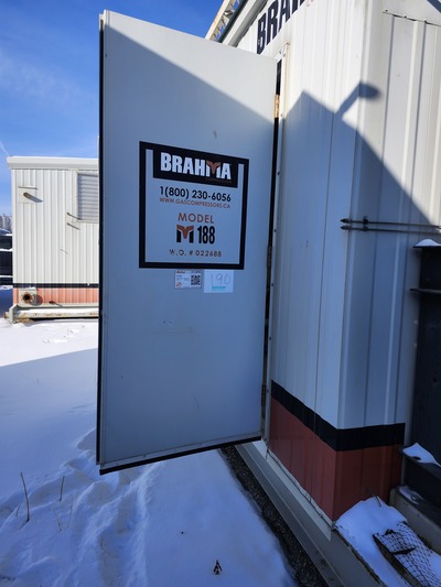 For sale: A 2007 Brahma M188 cooler, featuring a LeROI HG17 screw compressor with a single stage. This unused surplus unit is housed and operationally disconnected, ready for new installation. Powered by a Cummins G855c natural gas driver with a maximum horsepower of 188. Ideal for equipment buildings in Calgary, AB. Note: Trailer mounted and warranty not included.