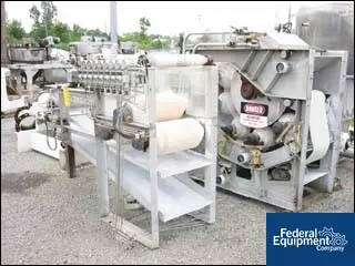 ITEM 2448: 42” WIDE X 30’ LONG EIMCO 316 STAINLESS STEEL HORIZONTAL VACUUM BELT FILTER, 4 LANE APPLICATOR HEAD;, PNEUMATIC ADJUSTMENT ON ROLLERS, 4 OVERHEAD SPRAY BARS, (3) 24” DIAMETER X 60” HIGH FILTRATE TANKS, (3) EIMCO 1 x 8 STAINLESS STEEL CENTRIFUGAL PUMPS, TRAVAINI TYPE TRSC 100-700/O/P ...more