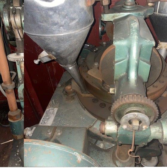 Stokes Model 5192, Single head tablet press rated up to 130 tablets per minute – depending on materials and application. Has 1-1/2 ton maximum top pressure, 1/4" maximum fill depth, 1/8" maximum OD compact and 1-1/16" standard die OD and cycle counter. Mounted on A steel frame with height ...more