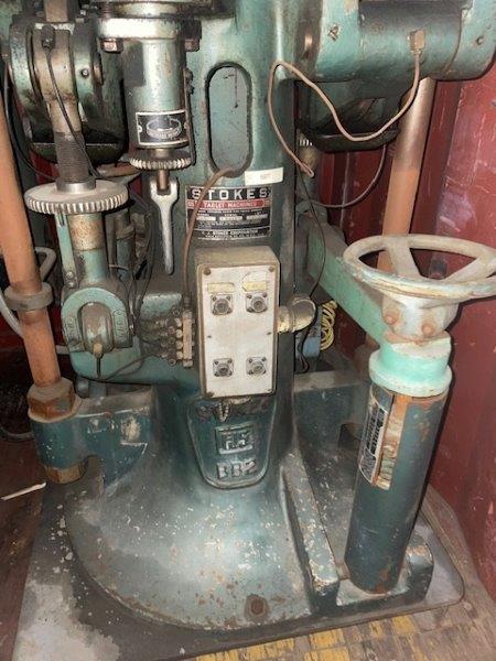 used- stokes rotary tablet press, model bb2. 27 stations. keyed upper punch guides, 3/60/220/440, rated 725-1400 tablets per minute. maximum 5/8" diameter, maximum 11/16" depth of fill, maximum pressure 2.5 tons.