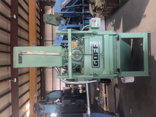 This is a small footprint barrel blast machine, featuring 1.5 cu foot loading capacity, 3 HP Direct Drive blast wheel, and low hours. Barrel tilts manually for loading and unloading. 240v Single Phase power required. Overall dimensions are 48" wide x 48" deep. 96" Tall., Manufacturer Goff Model 1.5 Cubic Foot Barrel ...more