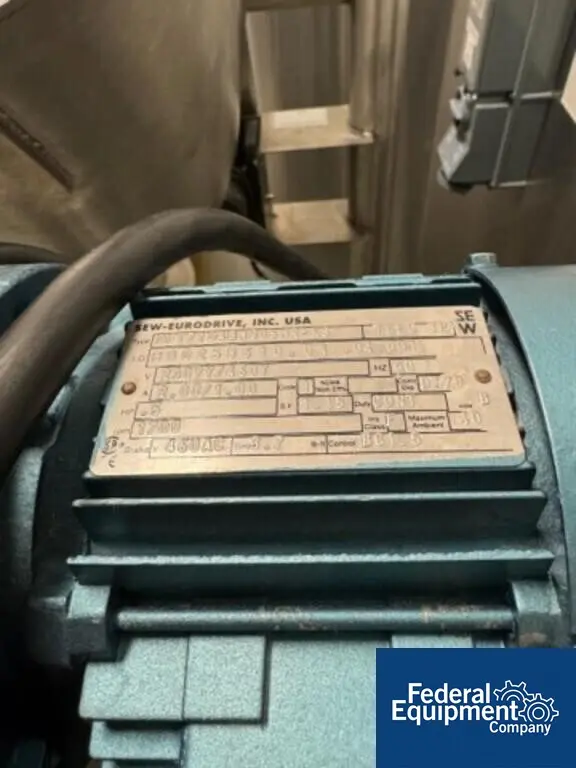 SERIAL. 276877, CAPACITY. 2 CUBIC FT, MATERIAL DENSITY. 300 LB/CUBIC FT, CONES DIAMETER. 15", OUT FEED DIAMETER. 6", QUICK RELEASE COVER. YES, STAINLESS STEEL BOWL. YES, MOUNTED TO STAND. CARBON STEEL, MOTOR HORSEPOWER. 3/4.