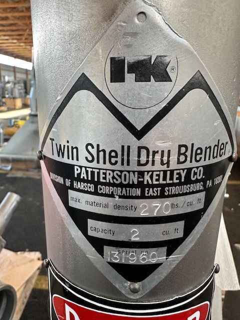 Inventory No. 0921-015-0003 Manufacturer Patterson-kelley Name Crossflow Twin Shell Blender Arrival Date 10-22-2021 Dimensions L x W x H (inches) Unavailable Capacity 2 CU FT Weight (lb.) 1 Category Chemical Processing Condition Used Available Quantity 1 Serial No. 281708 Item Stainless Steel Construction, Rated ...more