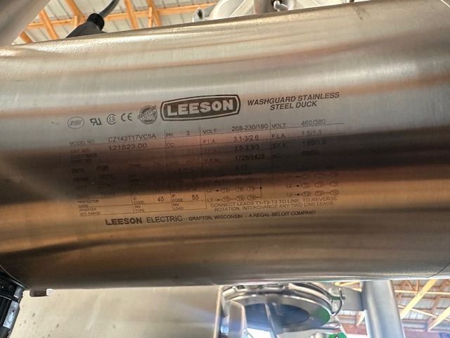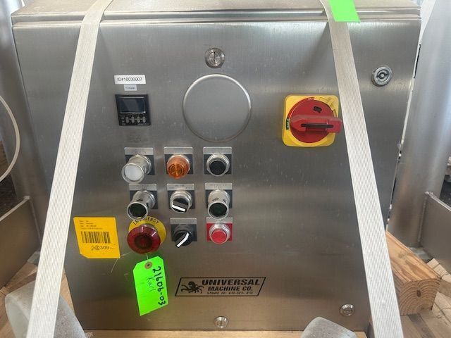 SERIAL. 276877, CAPACITY. 2 CUBIC FT, MATERIAL DENSITY. 300 LB/CUBIC FT, CONES DIAMETER. 15", OUT FEED DIAMETER. 6", QUICK RELEASE COVER. YES, STAINLESS STEEL BOWL. YES, MOUNTED TO STAND. CARBON STEEL, MOTOR HORSEPOWER. 3/4.