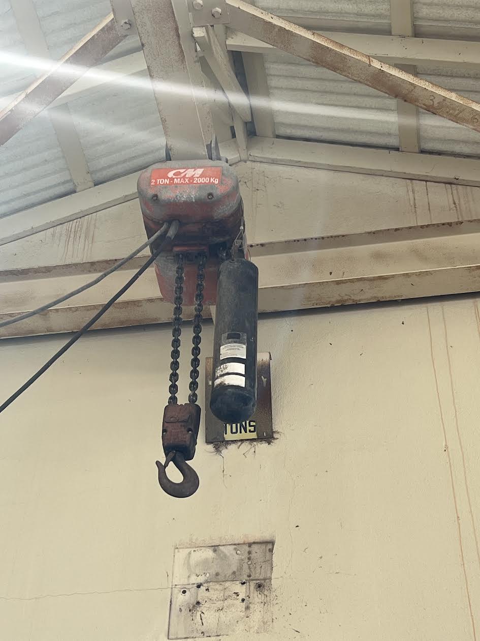 Inventory No. 0825-056-0722 Manufacturer Harrington Model No. TCR-2000P2 Name Air Hoist Arrival Date 01-30-2026 Dimensions L x W x H (inches) 20 x 14 x 13 Capacity 2 TON Weight (lb.) 89 Category Material Handling Condition Used Available Quantity 1 Serial No. 2-149C Item 60-90 Psi, Pendent Control, Made In Japan.