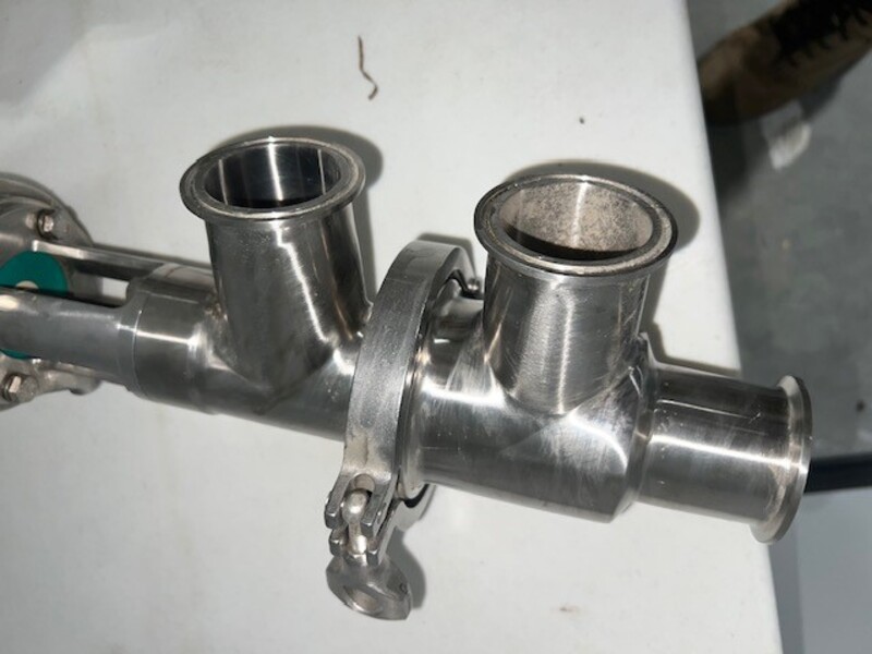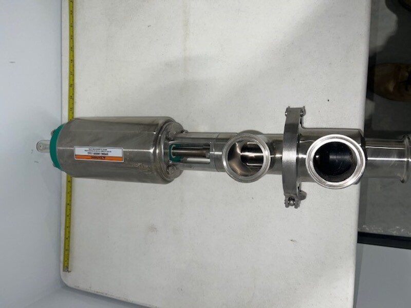 , (8) Tri-Clover 2" Sanitary 3 way Air Actuated valve. Approx. 23 LBS., TRI-CLOVER., Item. VALVE, Material. STAINLESS STEEL, Weight. 23 LBS.