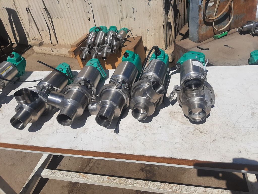 (5) Tri-Clover 2.5" air-actuated control valves, Model 761TR. Constructed from 316L stainless steel with 3A Dairy-grade certification. One serial# 787029. Previously used in yogurt production.