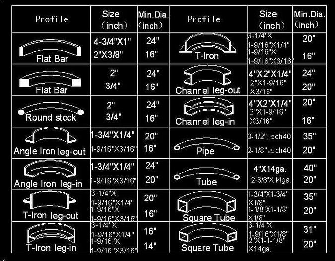 7.5" 2" Hydraulic 16 RPM 3 HP, 220 VAC, 3 Phase (Optional 440VAC) 2" schedule 40 / Min. Dia. 24" 2-1/2x14 Ga. (wall) / Min. Dia. 24 2x2x3/16 (wall) / Min. Dia. 24 1-3/8x1-3/8 / Min. Dia. 24 4x9/16 (wall) / Min. Dia. 36 or 2-3/8x3/8 (wall) / Min. Dia. 20 2-3/4x2x3/8 (wall) / Min. Dia. 47 2x3/16(wall) / Min. Dia. 28 2x3/16(wall) / Min. Dia. 20 2x3/16 (wall) / Min. Dia. 28 2x3/16 (wall) / Min. Dia. 20 3-1/8x1-3/4x3/16 / Min. Dia. 26 3-1/8x1-3/4x3/16 / Min. Dia. 24 1,120 lbs. 40 x 35 x 65"H