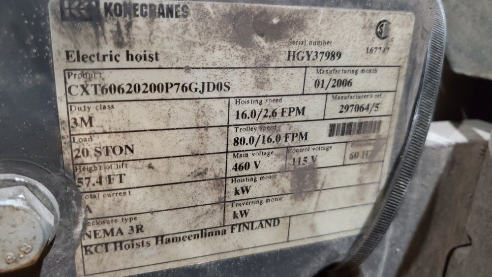 25 Ton, Konecranes, electric hoist with trolley, 575 V., 60 Hz, 2019