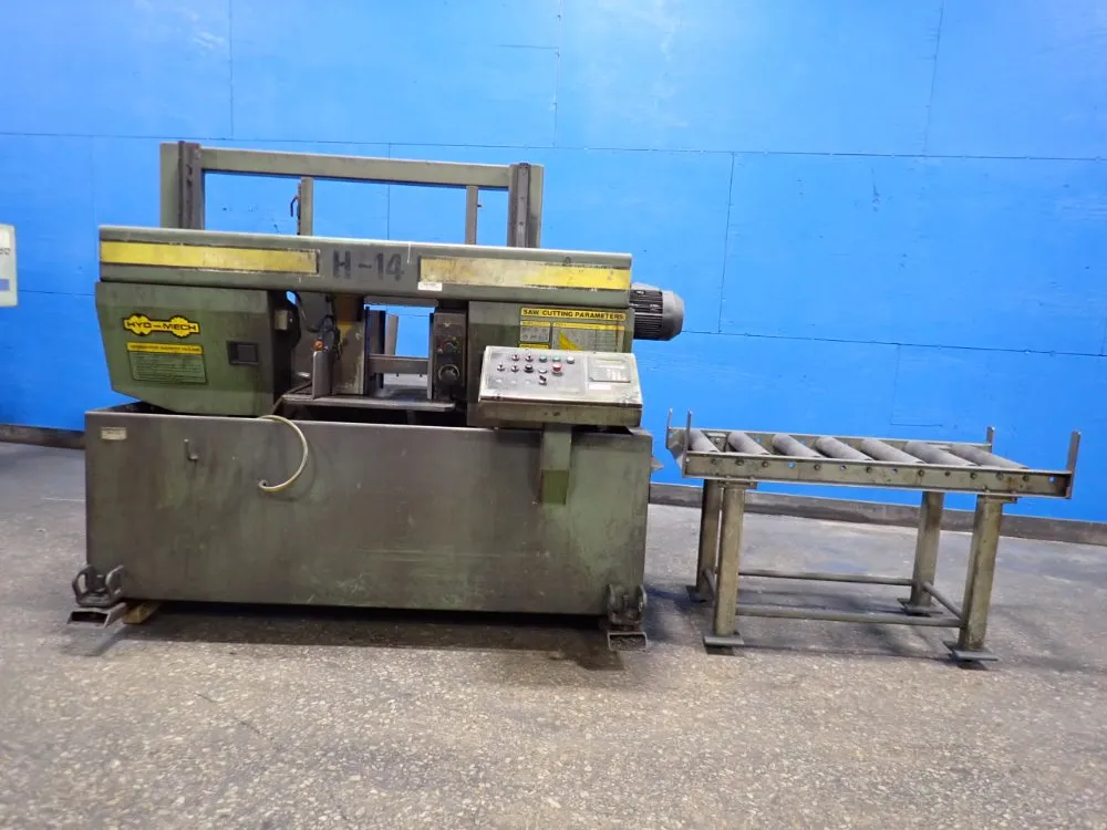 14" x 14" Hyd-Mech #H-14, horizontal band saw, 15' 4" x 1-1/4" blade, hydraulic clamping, 1999, #65212