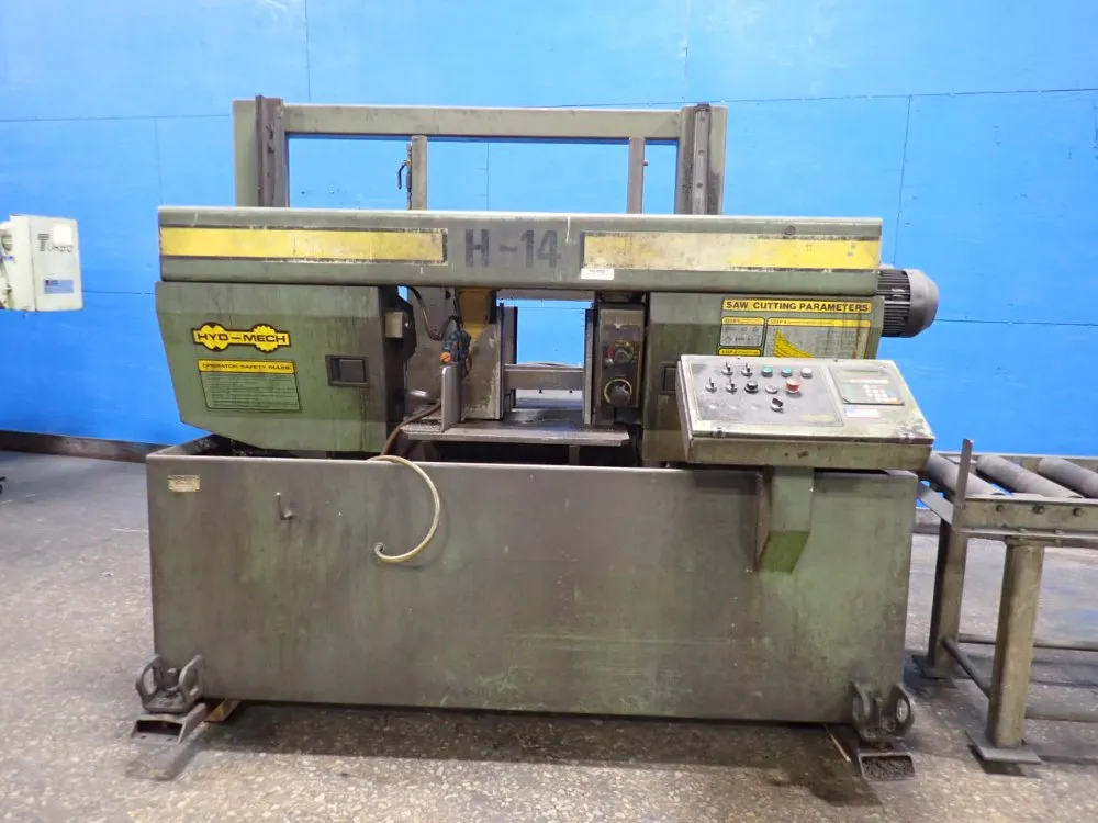 14" x 14" Hyd-Mech #H-14, horizontal band saw, 15' 4" x 1-1/2" blade, 60-350 SFM, coolant, 2000