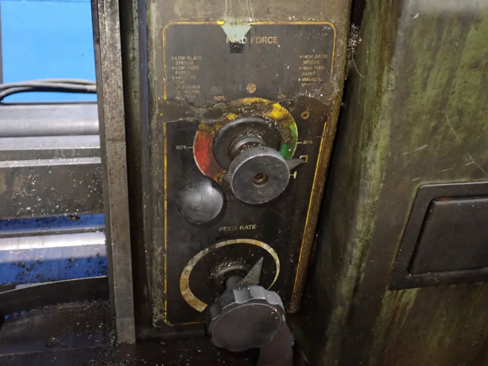 Year: 1999:, CAPACITY:, Cutting Capacity (Round): 14", Cutting Capacity (Square): 14" x 14", Blade Size: 1.25" x 184", Table Height: 31", Blade Speed (Surface Ft./Min.): 50-350 SFPM, Shuttle Stroke: 34", Main Drive Motor: 10 HP, Hydraulic Drive: 2 HP, CNC Controled Length & Cut Quantity, Hydraulic Power Clamping ...more