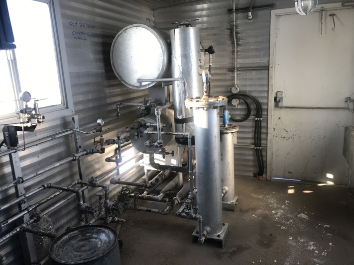 This portable glycol dehydration unit, built in 1990, is designed for sweet service with a maximum pressure of 1415 psi and can handle up to 25 MMSCFD across three phases. Housed in a heated building, it features a contactor diameter of 20 inches and length of 28 feet. Located in Lloydminster, SK, Canada, this unit is currently operational and available for sale.