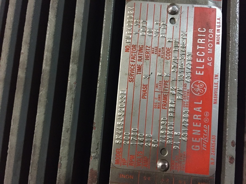 200 HP 1785 RPM General Electric, Frame 445TD, TEFC, 216 A, 460 Volts (2 available)