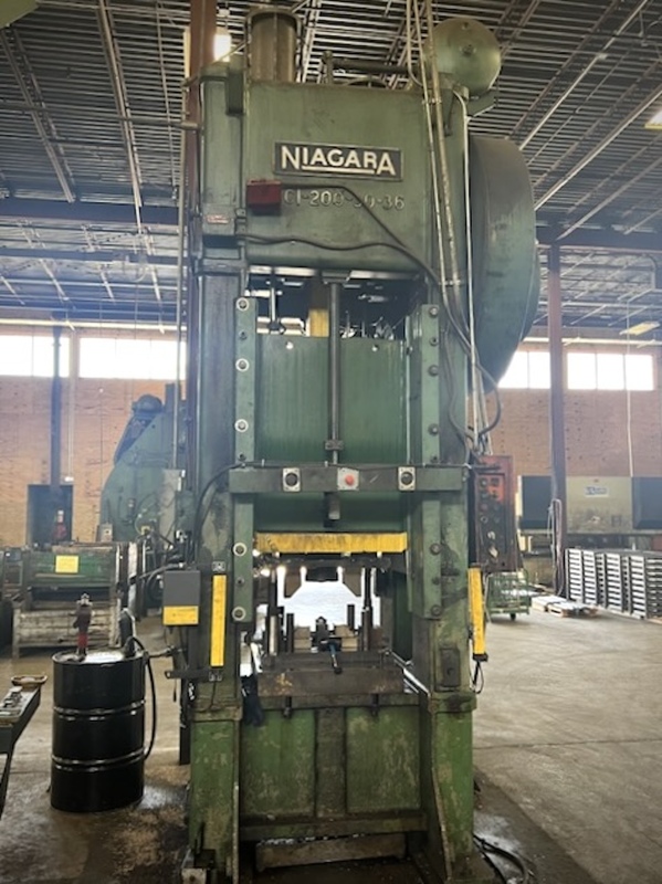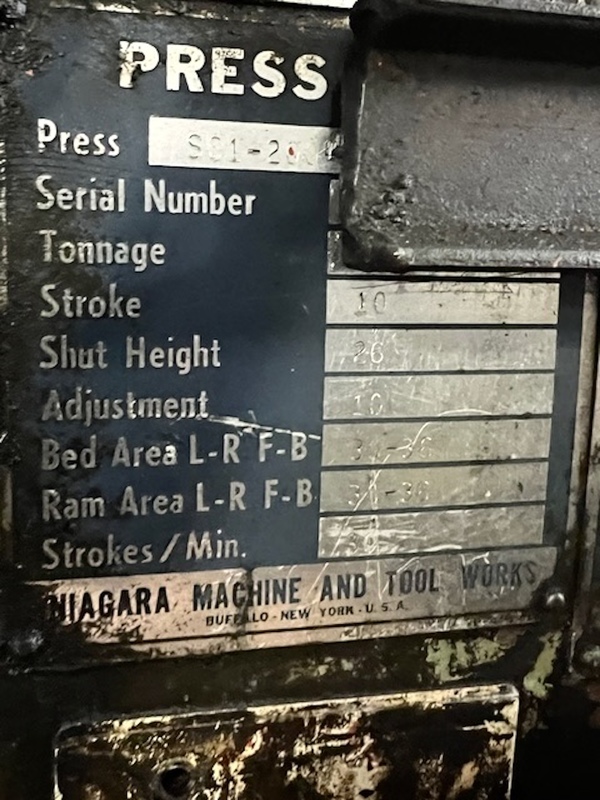 200 Ton, Niagara #SC1-200-30-36, 10" stroke, 26" Shut Height, 30" RL x 36" FB bed,air clutch & brake, 1966 Manufacturer: Niagara Model: SC1-200-30-36 Year: 1966 Ton: 200 Stroke: 10.0 Shut Height: 26.0 Air Clutch: Yes Stock # 8028 Request a Quote 4 Play VideoFor Sale by Alma Machinery Co-Columbia TN Surplus Record Dealer Since 1960 Contact Seller Columbia, TN Ken King 615-36...> Show Seller's Phone Number 615-369-7788 Let the seller know you found their listing on Surplus Record! View More Alma Machinery Co-Columbia TN 's ListingsDescriptionStraight Side Press • Used 200 Ton Press for SaleManufacturer: NiagaraModel: Niagara SC1-200-30-36 PressCondition: Very GoodLocation: Columbia, TN WarehouseYear: 1966Machine #: 8028CAPACITY200 TONSTROKE10″MAX SHUT HEIGHT TO BED26″ SDAUBED AREA30″ X 36″ (RL X FB)SPEED30 SPMSLIDE ADJUSTMENT10″ MOTORIZEDSLIDE AREA30″ RL X 30″ FBBOLSTER PLATE5″ H X 30″ RL X 36″ FBDISTANCE BETWEEN UPRIGHTSAPPROX 32″DISTANCE FLOOR TO BED32″WINDOW SIZE21″CLUTCHNIAGARA AIR CLUTCH & BRAKEELECTRICS20 HP 1150 RPM 208-240/480V-3-60 MOTOR & NIAGARA RELAY PRESS CONTROLAPPROX DIMENSIONS183″ H X 104″ RL X 92″ FBAPPROX WEIGHT48,000 LBSEQUIPPED WITHSINGLE BACK GEARED DESIGN, FLOOR STANDING, TIE ROD FRAME, DUAL AIR COUNTERBALANCES, TRABON LUBRICATION, FLYWHEEL BRAKENOTE__LOCATIONTHIS USED PRESS IS LOCATED IN OUR COLUMBIA, TN WAREHOUSE Request More Information from SellerGet Your Price from Alma Machinery Co-Columbia TN! "*" indicates required fieldsName*Company*Email* PhoneZip / Postal Code*QuestionMake an OfferRequests Send me a shipping quote I am interested in financingSend Copy Email me a confirmation of this inquiryBuyer Protection Use our partner Escrow.com to buy or sell equipment safelyBuyer Protection Send me info about buyer protectionThis field is hidden when viewing the formDealer Email Buyers Who Viewed This Listing Also Viewed … 200 Ton, Niagara #BP2-200-72-36, straight side double crank, 10" stroke, 28" Shut Height, 10" adj., 72" x36"bed, 40-80 SPM, Wintriss DiPro 1500Category: Straight Side Double Crank (Single Act...Seller: Rygate, LLCLocation: Clarkston, MI Mfr: NiagaraModel: BP2-200-72-36Model Number.BP2-200-72-36, Serial Number……………………………… 49875, Bed Area. 72” x 36”, Slide Area…………………………………. 72” x 36” ...more 200 Ton, Amada #SDE-2025, Servo Press, w/CNC Control, 49.2" x 33.1" Table, 9.8" Stroke length, 33.5" x 24.8" Slide Area, 25.2" Shut height, 46.9 HP, 2008Category: Straight Side Double Crank (Single Act...Seller: Machine Tool BidsLocation: Chicago, IL Mfr: AmadaModel: SDE 2025Year: 2008MACHINE, 2008 AMADA SDE 2025. 220 Ton, Amada #SDE-2025, Servo driven straight side punch press, full graphic CNC Control, 9.8" stroke, 2014Category: Straight Side Double Crank (Single Act...Seller: Manufacturing SolutionsLocation: Santa Ana, CA Mfr: AmadaModel: SDE-2025Year: 2008 200 Ton, Niagara #BP2-200-72-36, Straight Side Double Crank Press, 72" x 36" Bed & Ram Size, 10" Stroke, 40-80 VSPMCategory: Straight Side Double Crank (Single Act...Seller: S & G Press & Machinery SalesLocation: Shelby Township, MI Mfr: NiagaraModel: BP2-200-72-36Tonnage 200, Stroke 10 inches, Shut Height 28 inches, Adjustment 10 inches, Bed Size 72" LR x 36" FB, Ram Area 72" LR x 36" FB, SPM 40-80 VSPM, Used 200-ton Niagara Straight Side Press, Press Model BP2-200-72-36, Serial Number 49875, 200-ton Capacity, 10" Stroke, 28" Shut Height, 10" Adjustment, 72" LR x 36" FB Bed ...more 220 Ton, Amada #SDE-2025, 4-Post Servo Electric Press, 50" x 33" bed, 9.8" stroke, 25" daylight, 2008Category: Straight Side Double Crank (Single Act...Seller: Southern Fabricating Mchy SalesLocation: Lithia, FL Mfr: AmadaModel: SDE-2025Year: 2008220 Ton Electric Press with Pneumatic Die Cushion, Tonnage: 220 Tons, Bed Size: 50" X 33", Design: Straight Side, Stroke: 9.8", Daylight: 25", Power: 40 kW, INCLUDES: Pneumatic Die Cushion, ***We strongly encourage personal inspection of all pieces of used equipment***, ***All Price, Location and ...moreShare × "*" indicates required fieldsYour Name*Your Email* Recipient's Email* Note to Recipient