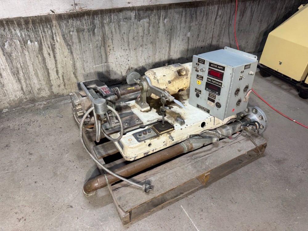 Used C.W. Brabender Intelli-Torque IT-7150 Plasticorder Extruder System, Serial #E03-146., Currently a 24:1 L/D extruder barrel and " (19 mm) screw with strand die, along with a water-cooled feed throat. Package includes a spare 30:1 L/D extruder barrel with a 1" (25 mm) screw, plus two sheet dies: one 4" (102 mm) ...more