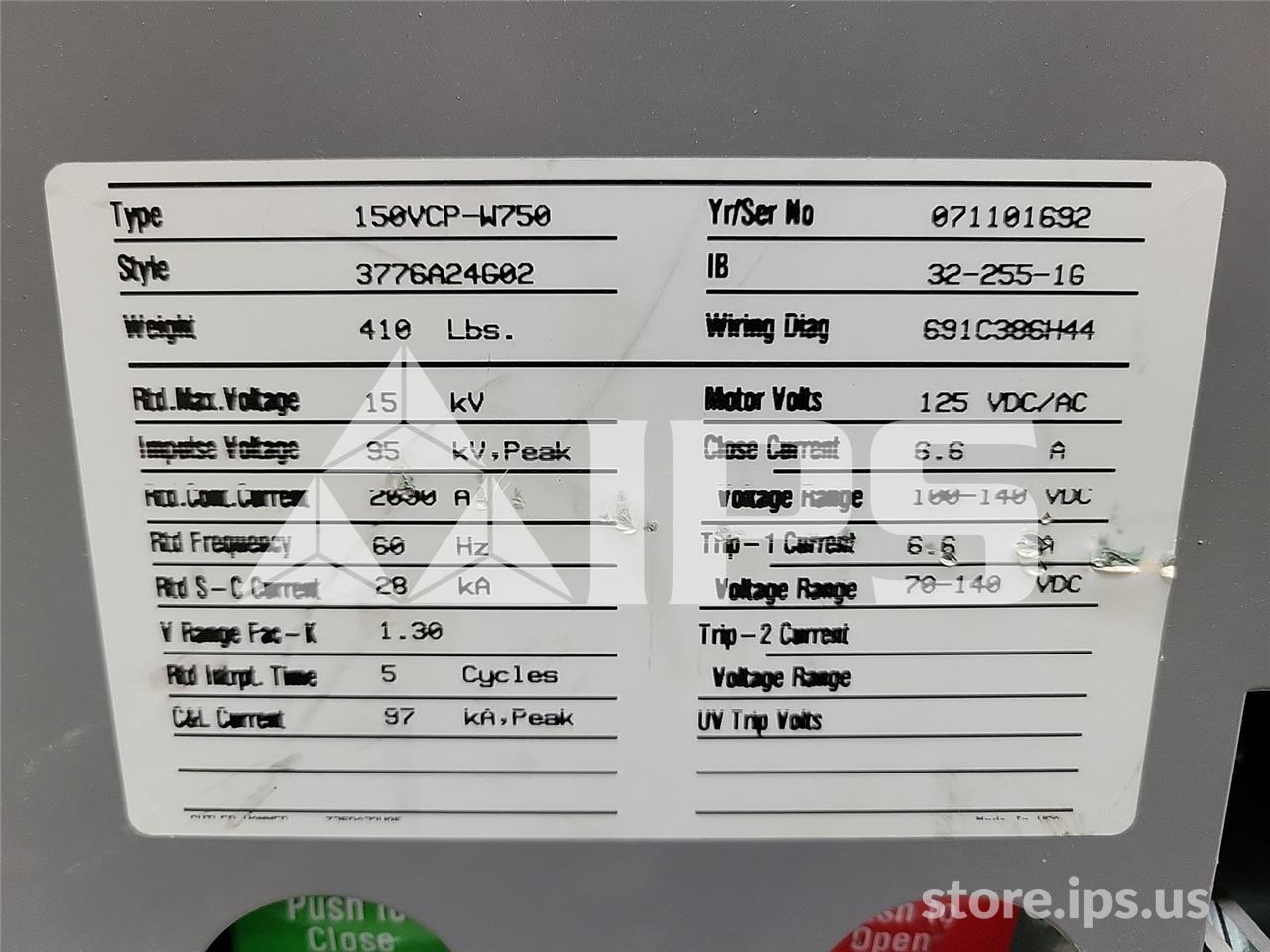 2000 Amps, Eaton, 150VCP-W500, Vacuum Circuit breaker, 15kV, 125VDC/125VAC