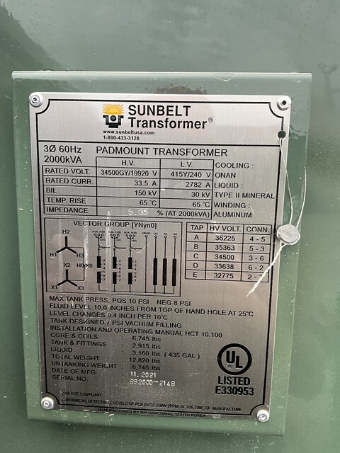 2000 KVA 34500GY/19920 Primary, 415Y/240 Secondary, 3 phase, Padmount Transformer kVA: 2000.000 Primary Voltage: 34500 - 19920 Secondary Voltage: 415 - 240 Stock # MT45668 Request a Quote 2 For Sale by Maddox Industrial Transformer Surplus Record Dealer Since 2015 Contact Seller Greenville, SC Sales Dept. 800-27...> Show Seller's Phone Number 800-270-2011 Let the seller know you found their listing on Surplus Record! View More Maddox Industrial Transformer 's ListingsDescription Request More Information from SellerGet Your Price from Maddox Industrial Transformer! "*" indicates required fieldsName*Company*Email* PhoneZip / Postal Code*QuestionMake an OfferRequests Send me a shipping quote I am interested in financingSend Copy Email me a confirmation of this inquiryBuyer Protection Use our partner Escrow.com to buy or sell equipment safelyBuyer Protection Send me info about buyer protectionThis field is hidden when viewing the formDealer Email Buyers Who Viewed This Listing Also Viewed … 2000 KVA 34500Y/19920 Primary, 415Y/240 Secondary, 3 phase Pad Mount TransformerCategory: 60 Hz Three Phase Padmount Transformer...Seller: Sunbelt Solomon Services, LLCLocation: Temple, TXJUST ADDED! 2000 KVA 34500Y/19920 Primary, 456 Delta Secondary, 3 phase, Padmount TransformerCategory: 60 Hz Three Phase Padmount Transformer...Seller: Maddox Industrial TransformerLocation: Battle Ground, WA 2000 KVA 34500GrdY/19920 Primary, 480Y/277 Secondary, PAD, NEW(2 avaialble, immediate shipment available)Category: 60 Hz Three Phase Padmount Transformer...Seller: Core TransformersLocation: SENECA, SC 2000 KVA 34500Y/19920 Primary, 480Y/277 Secondary, Taps, padmount (2 available)Category: 60 Hz Three Phase Padmount Transformer...Seller: T & R Electric Supply Co IncLocation: Colman, SD 2000 KVA 34500 Delta Primary, 480Y/277 Secondary, Oil Filled Padmount, newCategory: 60 Hz Three Phase Padmount Transformer...Seller: Alamo Transformer Supply CoLocation: Houston, TXShare × "*" indicates required fieldsYour Name*Your Email* Recipient's Email* Note to Recipient
