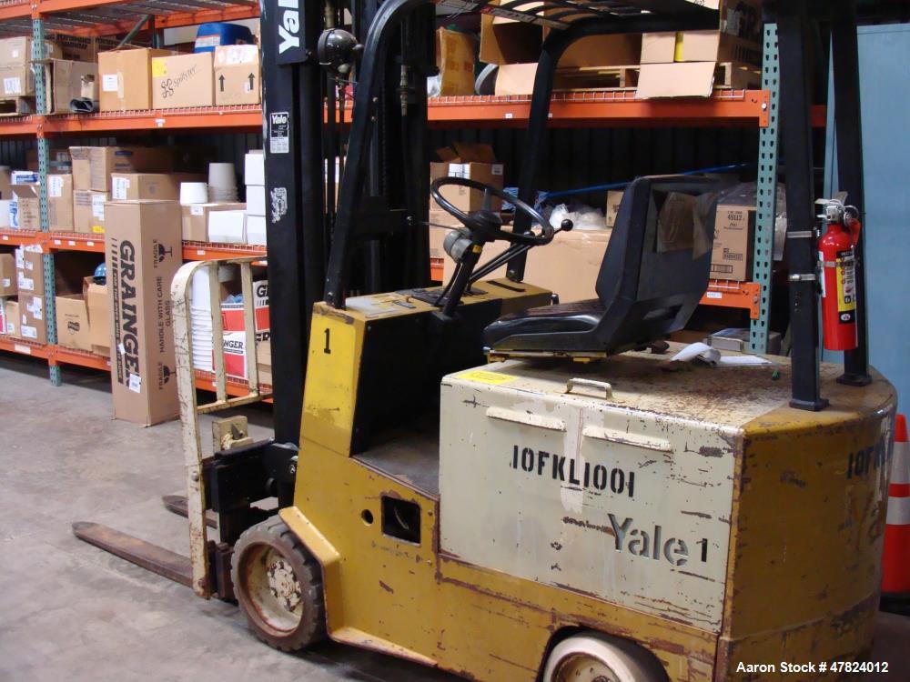 used- yale aprox. 2,000 lb. capacity 24 v electric sit-down forklift, model msw020lan24cs083, s/n n576930 with 2-stage 126" lift height