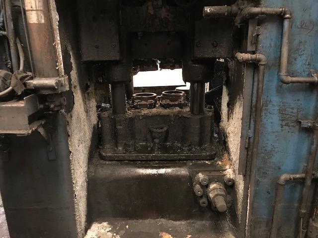 2000 Ton Ajax Mechanical Forging Press Asset: L057 Capacity: 2000 Ton Stroke: 12” 304.8mm SPM: 48 Top Knockout Stroke: 1 5/8 41mm Ram To Table: 39" 991mm Nom. Mech Stroke: 2 3/8" 60mm Table to Floor: 39" 1000mm Width between Columns R-L: 50" 1270mm SPM: 60 Motor Size: 150HP Motor Speed (R.P.M): Ram Face: R to L ...more