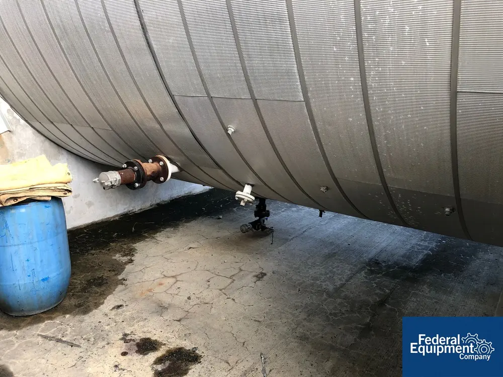 used- lundberg carbon steel vertical tank, approx. 18,000 gallon capacity. slight cone top, flat bottom; 12 diameter x 22 high straight side; multiple top fittings and side bottom outlets; 24" side bottom manway. insulated and covered with sheathing. includes ladder with safety cage. built 2017. previously stored 50% ...more