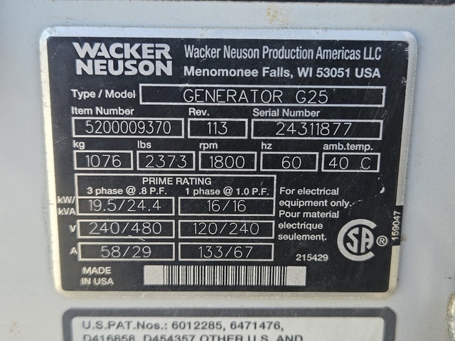 20 KW Wacker Neuson #G25, trailer mounted, Tier 4i, sound attenuated enclosure, 120/240/208/277/480 Volts, 6725 hours, 2016, $19k Manufacturer: Wacker Neuson Model: G25 Year: 2016 kW: 20 Volts: 120 - 480 Stock # 13504 Price: $19,000 USD - Finance for as low as $385/mth Estimated monthly payment valid upon approved credit. Request Info 10 For Sale by Turnkey Industries Surplus Record Dealer Since 2017 Contact Seller Dickinson, TX Clint Hardy 713-82...> Show Seller's Phone Number 713-823-0890 Let the seller know you found their listing on Surplus Record! View More Turnkey Industries ' ListingsDescription Please visit https://turnkey-industries.com/wacker-neuson-g25-trailer-mounted-diesel-generator-tier-3 for more details, photos, and a spec sheet! Request More Information from SellerInquire Further with Turnkey Industries! "*" indicates required fieldsName*Company*Email* PhoneZip / Postal Code*QuestionMake an OfferRequests Send me a shipping quote I am interested in financingSend Copy Email me a confirmation of this inquiryBuyer Protection Use our partner Escrow.com to buy or sell equipment safelyBuyer Protection Send me info about buyer protectionThis field is hidden when viewing the formDealer Email Buyers Who Viewed This Listing Also Viewed …JUST ADDED! 25 KW Wacker Neuson #G25, Portable Rental Grade Diesel Generator, Kohler Engine, 1800 RPM, Voltage Selector Switch, 240/480 Volts, 1560 hours, 2022Category: Diesel GeneratorsSeller: Diesel-Powered.comLocation: East Earl, PA Mfr: Wacker NeusonModel: G25Year: 2022Stock#: IE25-177-WK Fuel: Diesel Year: 2022 Voltage: 240/480 Volts Hours: 1560 Hours Phase: 1/3 Phase Make: Wacker Neuson Model: G25 Serial: WNMG0201CM0002428 Hertz: 60 Hz Wires: 12 Lead Kilo Watts: 25 kW Mounted: Trailer Mounted Fuel Tank: Base Fuel Tank Switch: Selector Switch Enclosure: Sound Attenuated Enclosed: ...moreJUST ADDED! 25 KW Wacker Neuson #G25, Portable Rental Grade Diesel Generator, 1800 RPM, Voltage Selector Switch, Kohler Engine, 240/480 Volts, 1560 hours, 2022Category: Diesel GeneratorsSeller: Diesel-Powered.comLocation: East Earl, PA Mfr: Wacker NeusonModel: G25Year: 2022Stock#: IE25-175-WK Fuel: Diesel Year: 2022 Voltage: 240/480 Volts Hours: 1560 Hours Phase: 1/3 Phase Make: Wacker Neuson Model: G25 Serial: WNMG0201CM0002428 Hertz: 60 Hz Wires: 12 Lead Kilo Watts: 25 kW Mounted: Trailer Mounted Fuel Tank: Base Fuel Tank Switch: Selector Switch Enclosure: Sound Attenuated Enclosed: ...more 20 KW Wacker Neuson #G25, Trailer Mounted, Tier 3, sound attenuated enclosure, 120/240/208/277/480 Volts, 3,110 Hrs., 2012, $19kCategory: Diesel GeneratorsSeller: Turnkey IndustriesLocation: Dickinson, TX Mfr: Wacker NeusonModel: G25Year: 2012 20 KW Wacker Neuson #G25, Trailer Mounted, Tier 3, sound attenuated enclosure, 120/240/208/277/480 Volts, 3,110 Hrs., 2014, $19kCategory: Diesel GeneratorsSeller: Turnkey IndustriesLocation: Dickinson, TX Mfr: Wacker NeusonModel: G25Year: 2014 20 KW Taylor, Diesel Generator, Isuzu 4LE1 engine, 516 hours, 1 phase, 240 VoltsCategory: Diesel GeneratorsSeller: Quantum TechnologyLocation: Shippensburg, PA Mfr: Taylor*Local Pickup Does Not Include any Palletization* Item Located in: Ephrata, PA 17522, Model:Taylor, Engine: Isuzu, Fuel: Diesel, KW: 20, Volts: 240, Hours: 516, Phases: 1, *Handling times for freight shipments average 5 days, but may vary depending on size, weight, location, and current trucking conditions. This does ...moreShare × "*" indicates required fieldsYour Name*Your Email* Recipient's Email* Note to Recipient