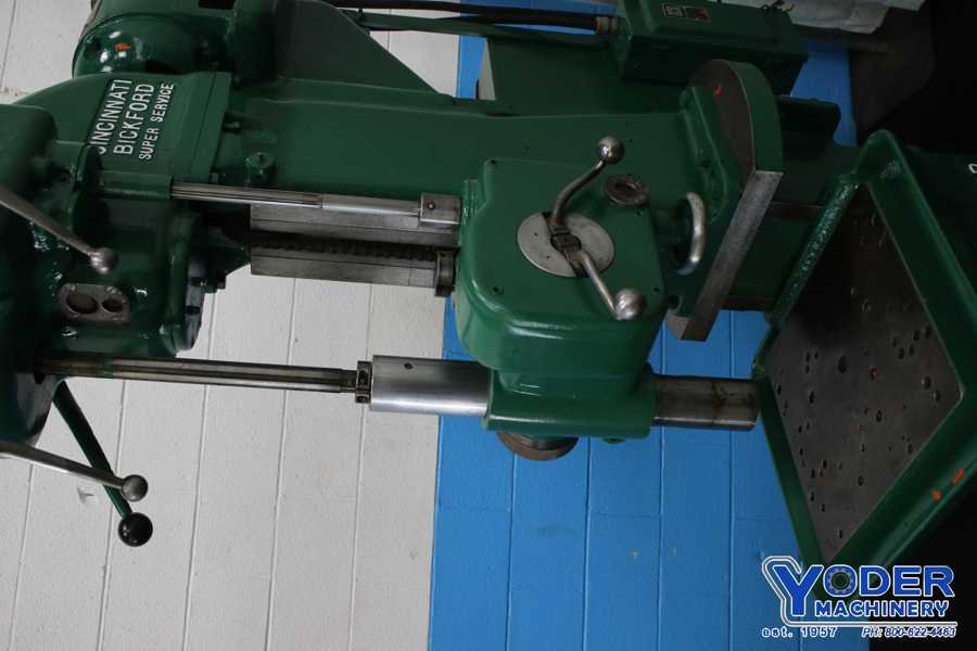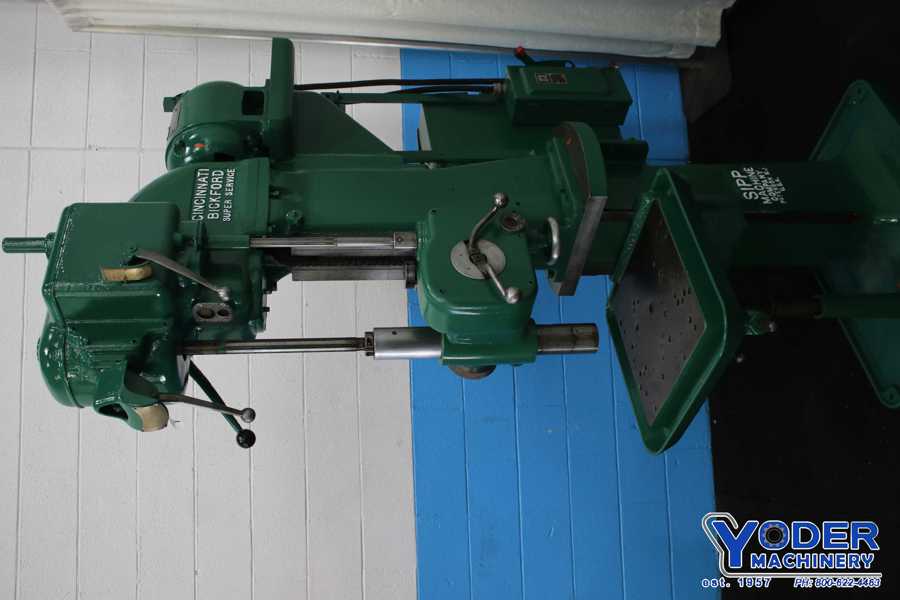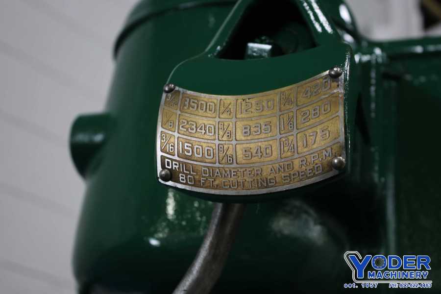 Cincinnati Bickford 21″ Drill Press, Inventory # 9999, Model: 21″ 1L, S/N: 1L2901, Depth of Throat: 10 1/2″, Diameter of Swing Away Table: 19″, Spindle Speeds: (9) 150 – 3,000 RPM, Spindle Feeds:.004,.008,.014,.020 IPR, Spindle Travel: 10″, Spindle Taper: #4 MT, Diameter of Spindle: ...more