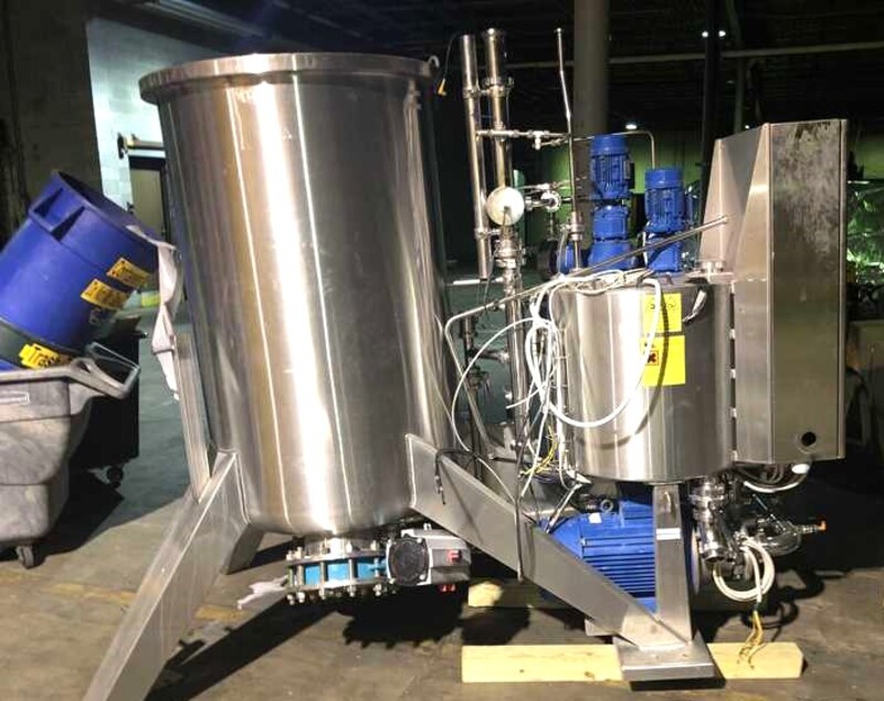 Funda pressure leaf filter, 160 square feet with 316L stainless steel wetted parts, rated for 220 PSI at 320 degrees Fahrenheit. Internal tank measures 4' diameter x 6'3" overall with conical bottom, unit has 30 HP 220/440 volt motor drive thru Falk gearbox with 6.265:1 ratio for 280 RPM. Unit complete with 20 ...more
