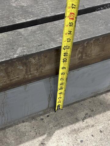 WIDTH OF PLATE. 79", LENGTH OF PLATE. 18', PLATE THICKNESS. 14-1/2", T SLOTS. 6, T SLOT CENTERS. 12-1/2", T SLOT WIDTH AT TOP. 1-3/8", T SLOT DEPTH. 2.3/4", T SLOT WIDTH AT BOTTOM. 2-1/2".
