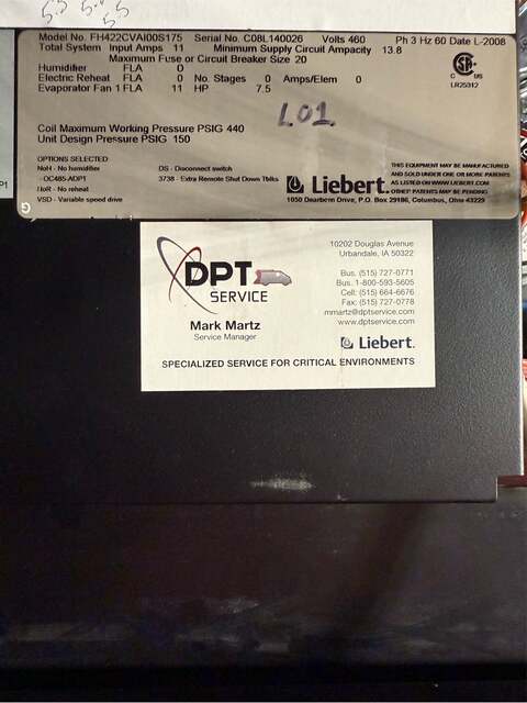 22 Ton, Liebert #FH422C, CRAC, CRAH, 460 Volts, Chilled Water Air Handler, 2008 Model: FH422C Year: 2008 Ton: 22 Stock # 110354 Price: $3,000 USD Request Info 4 For Sale by Quantum Technology Surplus Record Dealer Since 2024 Contact Seller Shippensburg, PA Sales Dept. 484-74...> Show Seller's Phone Number 484-749-8600 Let the seller know you found their listing on Surplus Record! View More Quantum Technology 's ListingsDescription Details*Local Pickup Does Not Include any Palletization* '*Handling times for freight shipments average 5 days, but may vary depending on size, weight, location, and current trucking conditions. This does not include shipping time.*Please be aware that item descriptions are provided as-is without any warranties or guarantees of accuracy. We strongly recommend using this content as a starting point for further research and consultation with relevant experts or authorities. We disclaim any liability for damages or losses resulting from the use or reliance on this content.We can ship international freight. Please contact us if you have any questions or issues checking out.IMPORTANT: The sale includes only items in the picture. No other accessories not in the picture are included. If you feel something is missing please reach out to us before buying. No returns will be accepted due to items not in the picture. Thanks for your understanding.The equipment is used, as such it may have some blemishes, light surface scratches not affecting operation. If you need more details about your particular equipment, please email with questions.Generators do not ship with batteries due to DOT regulations.Datacenter and computer equipment we sell does not include hard drives. Request More Information from SellerInquire Further with Quantum Technology! "*" indicates required fieldsName*Company*Email* PhoneZip / Postal Code*QuestionMake an OfferRequests Send me a shipping quote I am interested in financingSend Copy Email me a confirmation of this inquiryBuyer Protection Use our partner Escrow.com to buy or sell equipment safelyBuyer Protection Send me info about buyer protectionThis field is hidden when viewing the formDealer Email Buyers Who Viewed This Listing Also Viewed … 22 Ton, Liebert, CW084D, CRAC Chilled Water Down Flow AC, 460 Volts, 3PH, 2012 (8 available)Category: CRAC Systems (Computer Room Air Condit...Seller: Quantum TechnologyLocation: Shippensburg, PA*Handling times for freight shipments average 5 days, but may vary depending on size, weight, location, and current trucking conditions. This does not include shipping time.* Please be aware that item s are provided as-is without any warranties or guarantees of accuracy. We strongly recommend using this content as a ...more 22 Ton, Liebert #DS077A, CRAC, R407C, 3PH, 460 Volts, 2017Category: CRAC Systems (Computer Room Air Condit...Seller: Quantum TechnologyLocation: Shippensburg, PAModel: DS077AYear: 2017*Local Pickup Does Not Include any Palletization* '*Handling times for freight shipments average 5 days, but may vary depending on size, weight, location, and current trucking conditions. This does not include shipping time.* Please be aware that item s are provided as-is without any warranties or guarantees of ...moreShare × "*" indicates required fieldsYour Name*Your Email* Recipient's Email* Note to Recipient