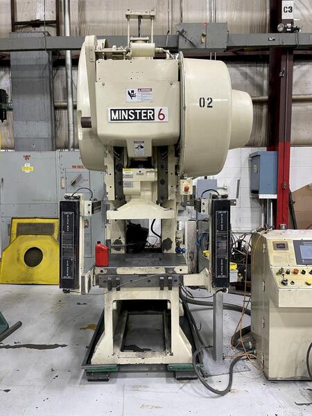Preliminary Specifications This 60-ton Minster Press can be seen under power in the S&G Press Livonia Michigan Warehouse. 60-ton Minster #6ss - 60-ton Mechanical Back Geared Open Back Inclinable Press For Sale, Single Crank Gap / OBI Press For Sale, Used Press, Minster Press, Less Than 100-ton Presses For Sale | |||