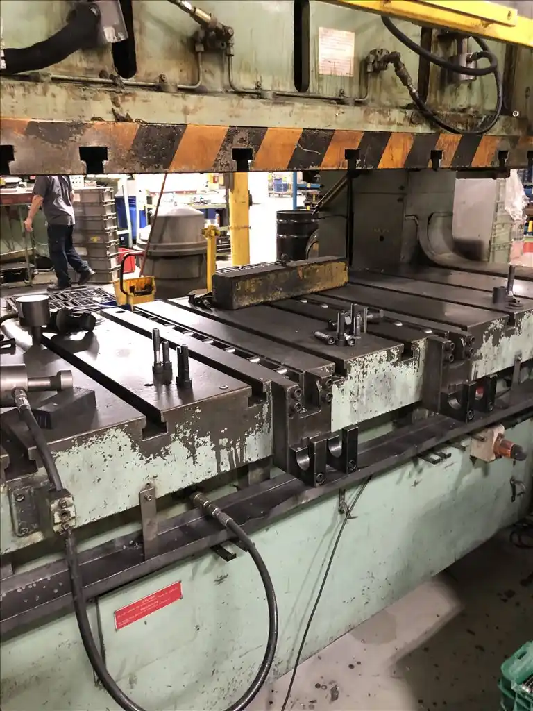 CAPACITY200 TON STROKE6" MAX SHUT HEIGHT TO BED21" SDAU BED AREA60" X 48" (RL X FB) SPEED60 - 120 SPM SLIDE ADJUSTMENT6" MOTORIZED SLIDE AREA60" X 48" (RL X FB) T-SLOTTED BOLSTER PLATEAPPROX. 5" THICK X 60" X 48" (RL X FB) T-SLOTTED PLATE DISTANCE BETWEEN UPRIGHTS60" DISTANCE FLOOR TO BED32" WINDOW SIZE25" WIDE ...more