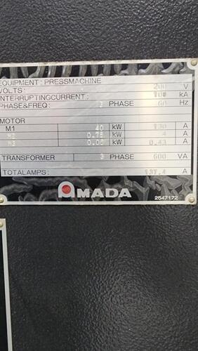200 Ton, Amada #SDE-2025, 9.8"stroke, 25.2"Shut Height, 4.3"adj, 49.2" x 33.1" table, 2008