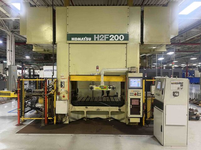 220 Ton, Komatsu #H2F200, 2 pt., plunger guided, servo driven press, 7.87" stroke, 22.63" Shut Height, 3.94" adj., 48-88 SPM, air cooled & brake, 2003 Manufacturer: Komatsu Model: H2F200 Year: 2003 Ton: 220 Stock # 710-02429 Request a Quote 11 For Sale by Rygate, LLC Surplus Record Dealer Since 2005 Contact Seller Clarkston, MI Brian Bridgeman 248-70...> Show Seller's Phone Number 248-709-6723 Let the seller know you found their listing on Surplus Record! View More Rygate, LLC 's ListingsDescription Model Number…………………........…....... E2F200Serial Number……………………………… 10003Year of Manufacture………………………. 2003Capacity..................................................... 220 US TonsBed Area........................................................ 72.83” x 37.4”Slide Area…………………………………...72.83” x 33.56”Stroke............................................................. 7.87”Adjustment..................................................... 3.94” Shut Height.................................................... 22.63” over bolster (SDAU)Bolster……………………………………… 9.06” thickStrokes per Minute......................................... 48-88Windows……………………………………35.04” wide Floor to top of bolster………………………. 40.16” Approximate Overall Weight………………. 88,000 #Overall Height of Press…………………….. 15’9” floor to highest pointAccuracy of Slide Bottom Dead Center……. +/- 0.0004”Floor Standing Request More Information from SellerGet Your Price from Rygate, LLC! "*" indicates required fieldsName*Company*Email* PhoneZip / Postal Code*QuestionMake an OfferRequests Send me a shipping quote I am interested in financingSend Copy Email me a confirmation of this inquiryBuyer Protection Use our partner Escrow.com to buy or sell equipment safelyBuyer Protection Send me info about buyer protectionThis field is hidden when viewing the formDealer Email Buyers Who Viewed This Listing Also Viewed … 220 Ton, Komatsu #H2F200 Servo press, straight side double crank, 7.8" stroke, 31.6" Shut Height, 48-88 SPM, 2003Category: Straight Side Double Crank (Single Act...Seller: S & G Press & Machinery SalesLocation: Shelby Township, MI Mfr: KomatsuModel: H2F200Year: 2003Tonnage 220, Stroke 7.87 inches, Shut Height 31.63 inches, Adjustment 3.94 inches, Bed Size 72.8 x 37.4, Ram Area 72.8 x 33.5, SPM 48-88, Standard, Komatsu Servo Press Model H2F200, Servo Metal Stamping Press, 200 ton Metric Capacity, 220 ton US Capacity, 1.3" to 7.87" Variable Stroke, 3.94" Motorized Adjustment ...more 220 Ton, Minster #MMC-DX1-2000-SV, D-frame single crank servo press, 7.8" stroke, 17.7" Shut Height, 4.3" adj., 26.7" x49.2" bed, 2022Category: Servo Drive PressesSeller: Nidec Press & AutomationLocation: Macomb, MI Mfr: MinsterModel: MMC-DX1-2000-SVYear: 2022Tonnage 220 tons, stroke Variable 1.97" - 7.87", Shut Height 17.7, Bed L 49.2, Bed W 26.7, Main DX1-2000-SV, Unit, Capacity, kN, 2000, US Tons, 220, Frame Type, D-Frame, Rated Tonnage Point, mm, 6.0, inch, 0.236, Working Energy, kJ, 15, inch-tons, 66.4, Full Stroke Length, mm, 250, inch, 9.84, SPM @ Full Stroke Length ...more 200 Ton, Minster #SX2-2000G-SV, 2-pt servo press, 9.84" stroke, 17.71" Shut Height, Rockwell/AB press Control, 84.6" x 33" bolster, 2019Category: Servo Drive PressesSeller: Nidec Press & AutomationLocation: Macomb, MI Mfr: MinsterModel: SX2-2000G-SVYear: 2019SPM 50 SPM @ 250 mm Stroke For Pendulum Motion, Tonnage 200 Tons, Stroke 9.84" (250 mm), S.H. on Bolster, SDAU 17.71" (450 mm), Bolster Size 84.6" x 33" (2150 x 840 mm), 200-ton, 2-Point, Unitized Frame Servo Press, Rockwell/AB, Press Control, Phase Servo Motor (water-cooled), Press, Mounts, Articulated Control ...moreFeatured 165 Ton, Aida #NC1-1500(HD), Servo Gap Frame, 2012Category: Servo Drive PressesSeller: Southern Press SolutionsLocation: Eaton Rapids, MI Mfr: AidaModel: NC1-1500 (HD)Year: 2012 330 Ton, Aida #DSF-N2-3000, servo stamping press, 11.8" stroke, 35 SPM, 5.11" adj, 102.4" x 47.2" bed, 67 HP, 22.8" die heightCategory: Servo Drive PressesSeller: Master Machinery LLCLocation: Detroit, MI Mfr: AidaModel: DSF-N2-3000, AIDA 330 Ton SERVO DSF-N2-3000 Stamping Press; AIDA Controls; Sproller SPR-2000 Spray and Roller Lubrication System; 35SPM; 2400x650mm Slide Area; 2600x1200mm Bolster Area; 580mm Max Die Height, Hydraulic Over Load Protection, Manufacturer AIDA Model DSF-N2-3000 Condition Used Stock Number 11660 Capacity 330 US ton ...moreShare × "*" indicates required fieldsYour Name*Your Email* Recipient's Email* Note to Recipient