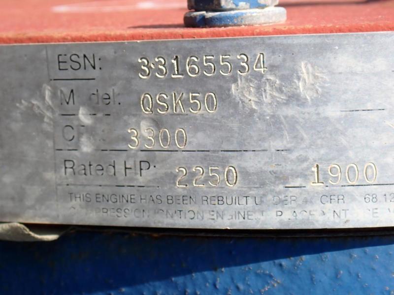 2015 Cummins Recent Reman Qsk50 Diesel Engine, Quad Turbo, Aftercooled, 2250 Hp At 1900 Rpm Rating, 9872 Total Hours W/ 5608 Idle, Cpl 3300/Cpl 8425, 73 Psi Cold Oil Pressure At Idle, Cm850, Mcrs Fuel System, Model Year 2006, Epa Certification 6cexl050.Aac. Sample Engine Sn# 33165534, With 30 Day Replacement Warranty. Good Running Takeout Engine, Comes Complete As Pictured, See Video.