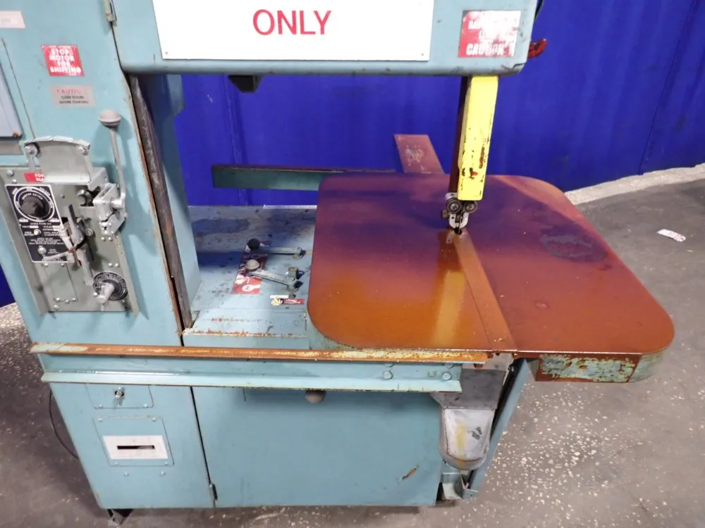 ImperialMetricThroat Cap 24" 609.6 mm Work Height 12" 304.8 mm Power 3 hp 2.2 kW Blade Width 1" 25.4 mm Blade Length 177" 4,495.8 mm FPM 40 - 5000 40 - 5000 Grob 24” Vertical Bandsaw, S/N 804, Model 4V-24, Year 1973, Table 24” x 28”, Tilt Table, Work Height 13”, Variable ...more