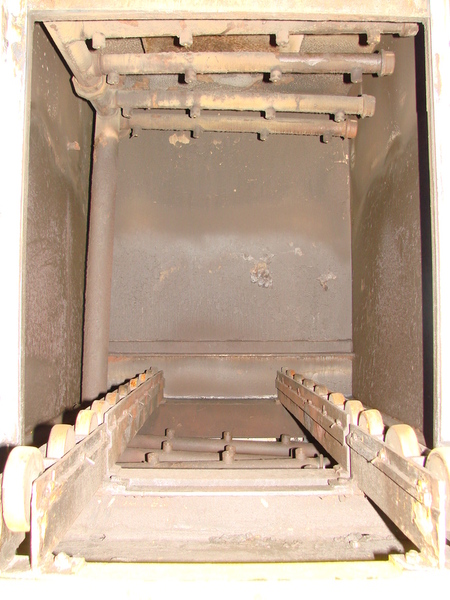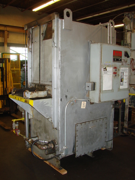 Batch Spray Washer complete with Eclipse Atmospheric Burner System, Roller Rail Hearth, Dual External Pumps (10 H.P.), and Vertical Rising Pneumatic Front Door., Side-Mounted Panel with Motor Starter and Partlow Analog Controller., Manufacturer Surface Combustion Model Super Spray Washer Condition Used Serial Number ...more