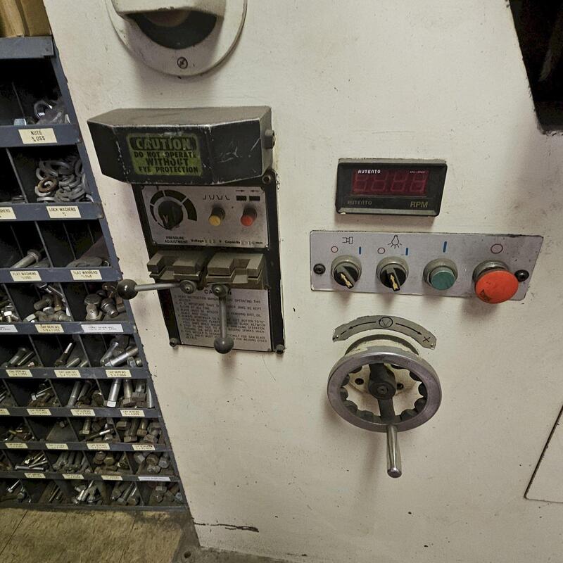 ImperialMetricThroat Cap 24" 609.6 mm Work Height 12" 304.8 mm Power 3 hp 2.2 kW Blade Width 1" 25.4 mm Blade Length 177" 4,495.8 mm FPM 40 - 5000 40 - 5000 Grob 24” Vertical Bandsaw, S/N 804, Model 4V-24, Year 1973, Table 24” x 28”, Tilt Table, Work Height 13”, Variable ...more