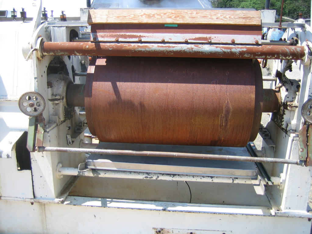 Used Overton model 36CSP 24" X 36" single drum carbon steel flaker. 7.5 HP US varispeed motor. 1/2 HP ribbon feeder. Knife discharge. (4) applicator rolls.