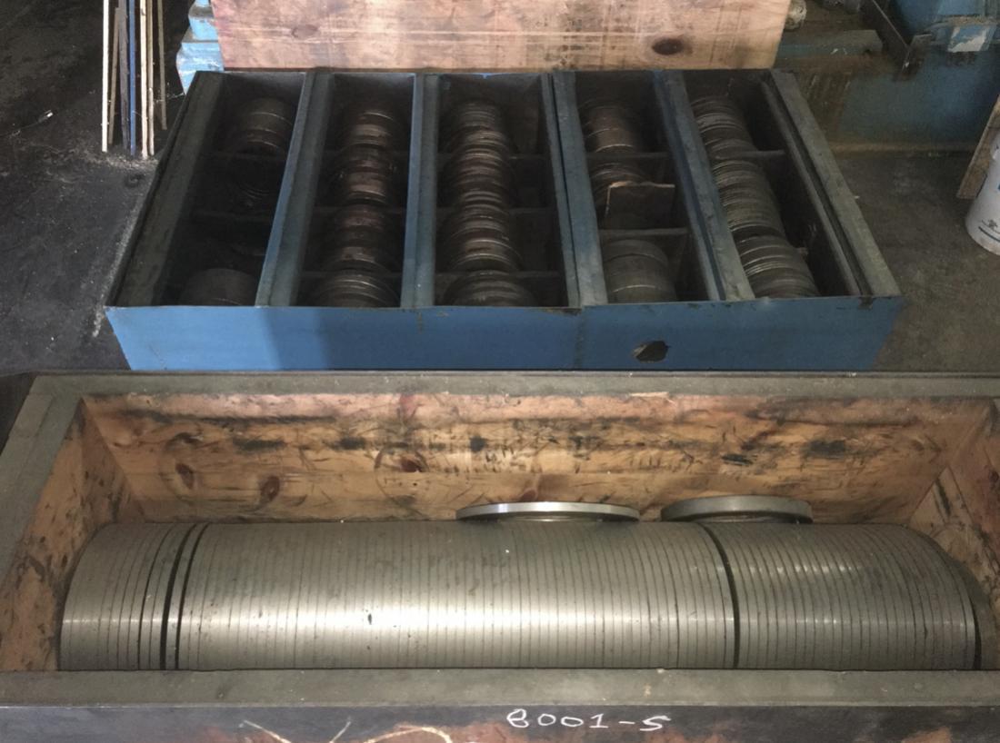 Ruesch Model 177 Precision Ring Slitter, ideal for heavy-gauge slitting. Includes 96 knives and 194 spacers. Note: Lacks electrical controls and universal joints. Quality used condition, ready to enhance your production line. THIS SLITTER DOES NOT INCLUDE ELECTRICAL CONTROLS OR UNIVERSAL JOINTS. INCLUDED TOOLING: (96) 12" DIAMETER X 0.500" WIDE KNIVES (194) SPACERS OF VARIOUS SIZES