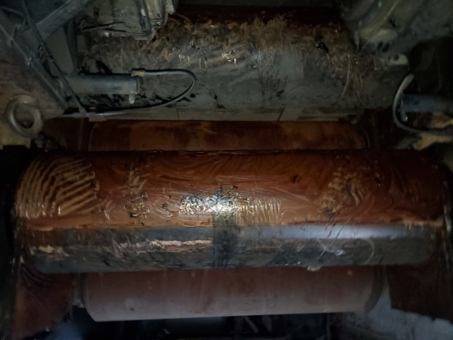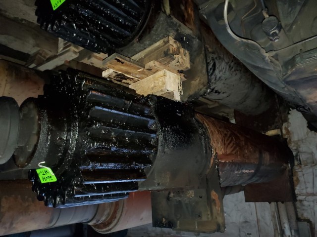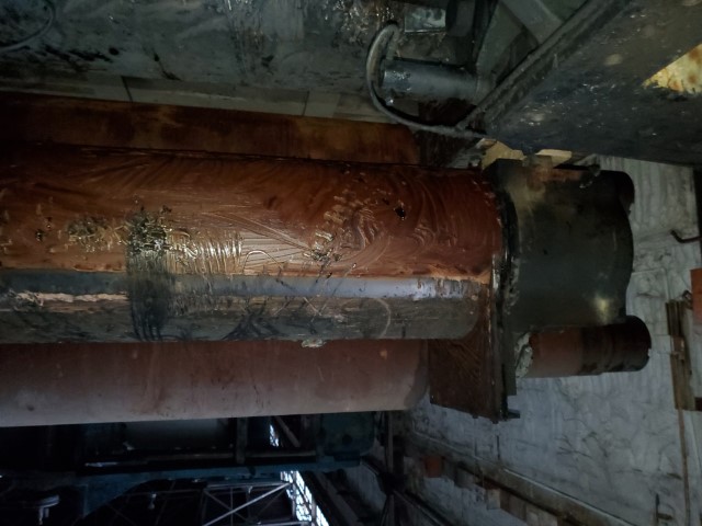 One (1) Used Adamson 24" x 84" Mill Roll, rear roll, cored for cooling, 17" bushing journals, connecting gear journal, smooth surface
