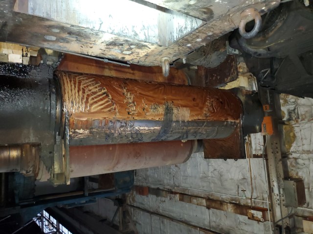 One (1) Used Adamson 26" x 84" Mill Roll, front roll, DRILLED for cooling, 17" bushing journals, connecting gear journal, smooth surface.