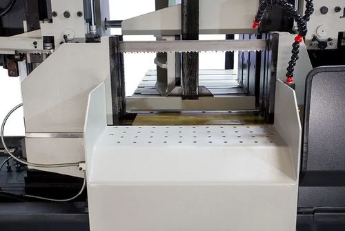 25.5” X 25.5” Horizontal Bandsaw with Omron CNC Control, Electric Chip Conveyor, Rotary Display for Actual Downfeed Display, Variable Vise Pressure, Full Height Bundling Clamps, Work Light and Mist Lubrication.