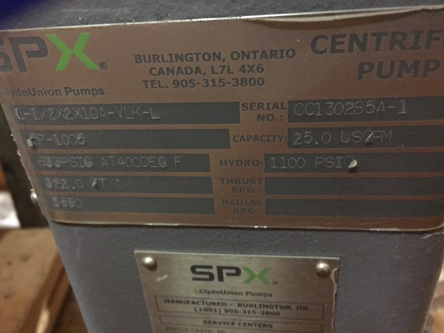 25 GPM @ 125' TDH, Goulds #3196, Stainless Steel Centrifugal Pump, 1" x 1.5", 8" diameter Impeller, 4.6 kW, 460 V