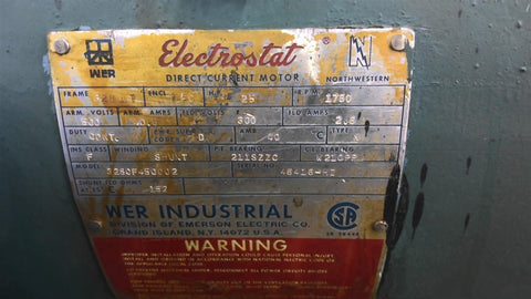 Electrostat 3280F450D02 25hp DC Motor 1800rpm 328AT 500v TEFC Used--Good Visual Condition---6/24/RVCC 153703---SS284 S1-1-1-F-A---1,100.00