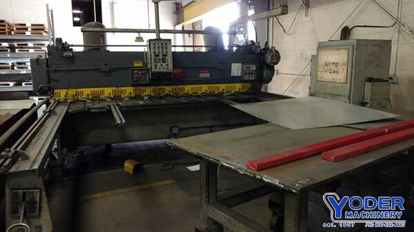 Spec, Max Thickness: 0.25″, Length of Blade: 10′, Hyd/Mech: Mech, Back Gauge: 36″, Power: 15 hp, SPM: 60 strokes/min., Dimensions: 168″ x 80″ x 80″, Weight: 18,500, Capacity (Mild Steel): 1/4″ Max. Cutting Length: 122″ Between Housings: 123″ Throat Depth: 18″ ...more