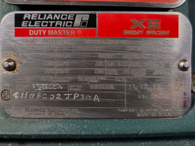 250 HP 1800 RPM Reliance Duty Master 841 XL, Frame 449T, TEFC, 1.15 service factor, 460 Volts