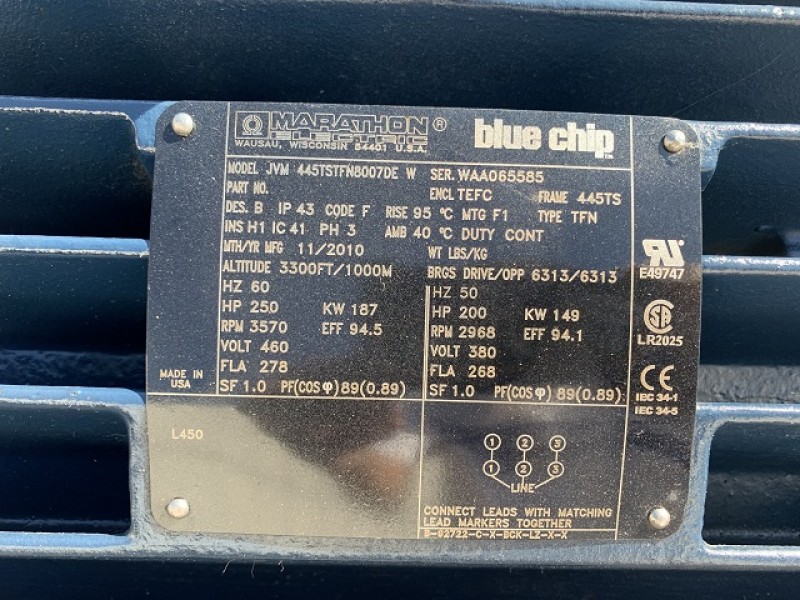 250 HP 3600 RPM Electric Motor, Frame 445TS, 460 Volts