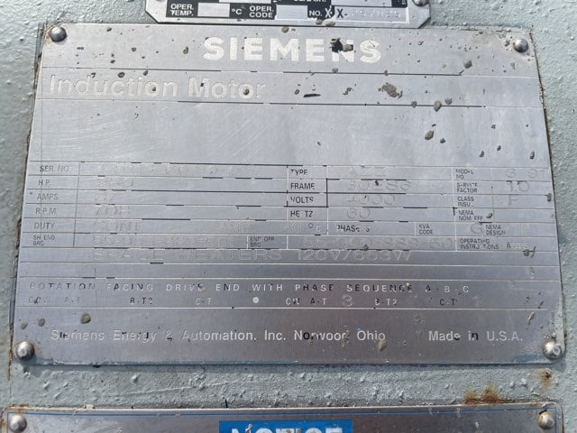 250 HP 700 RPM Allis-Chalmers, Frame 30ES6, TEFC, SB, 460 Volts