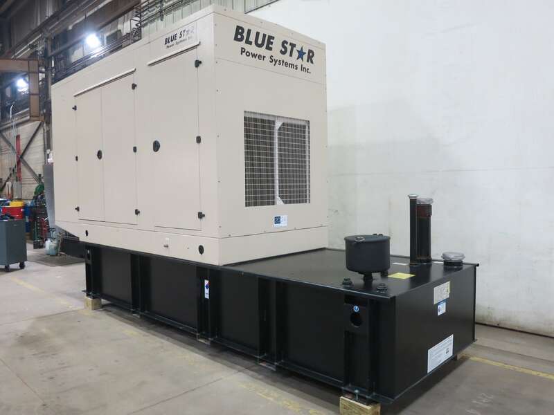250 KW Blue Star Power Systems #JD250-02, diesel generator set, 120/208 Volts, 422 HP @ 1800 RPM, John Deere 6090HF484 engine, EPA Tier 3, sound attenuated enclosure, 950 gal. sub-base fuel tank, 2024, new